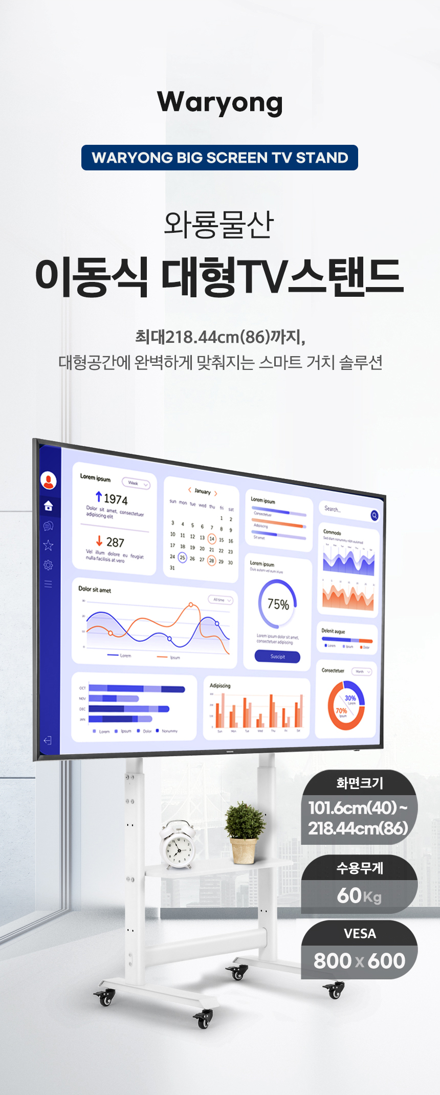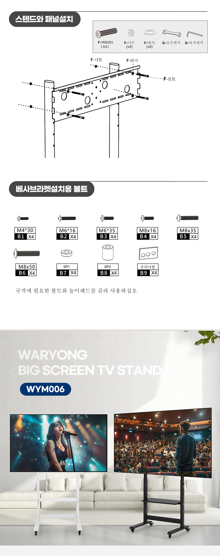 • 와룡물산 이동식 TV 티비 스탠드 거치대 대형 WYM006