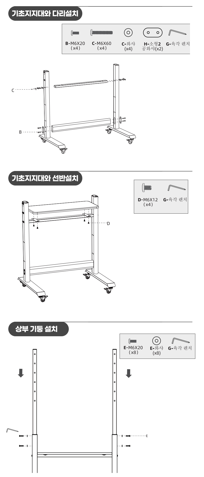 • 사이즈 715*533*1704mm 최대 1622~1704mm 18KG 재질 기둥:스틸 선반:합판 60kg이하 설치