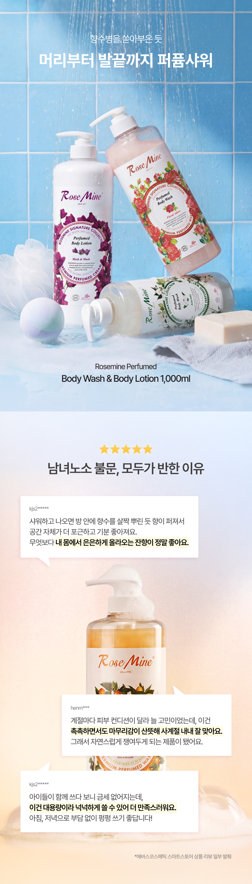 [로즈마인] 1+1 퍼퓸드 바디워시or 바디로션 1000ml