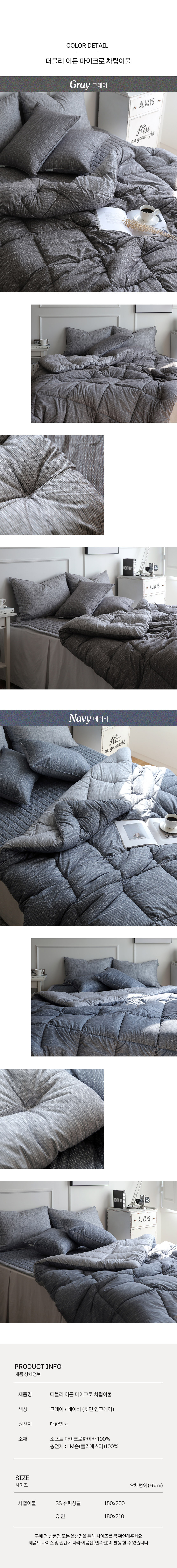 더블리 이든 마이크로 차렵이불 SS/Q 단품&세트 2컬러