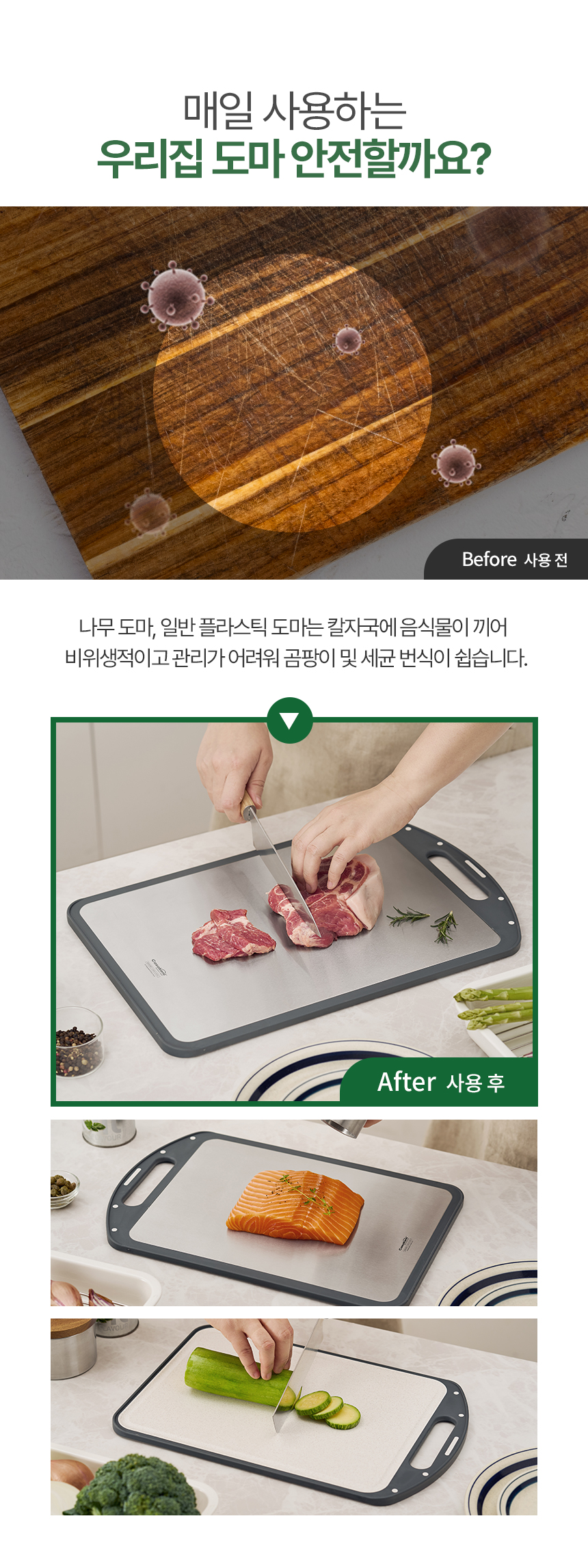 까사베니 스텐 304 양면 도마 (중)
