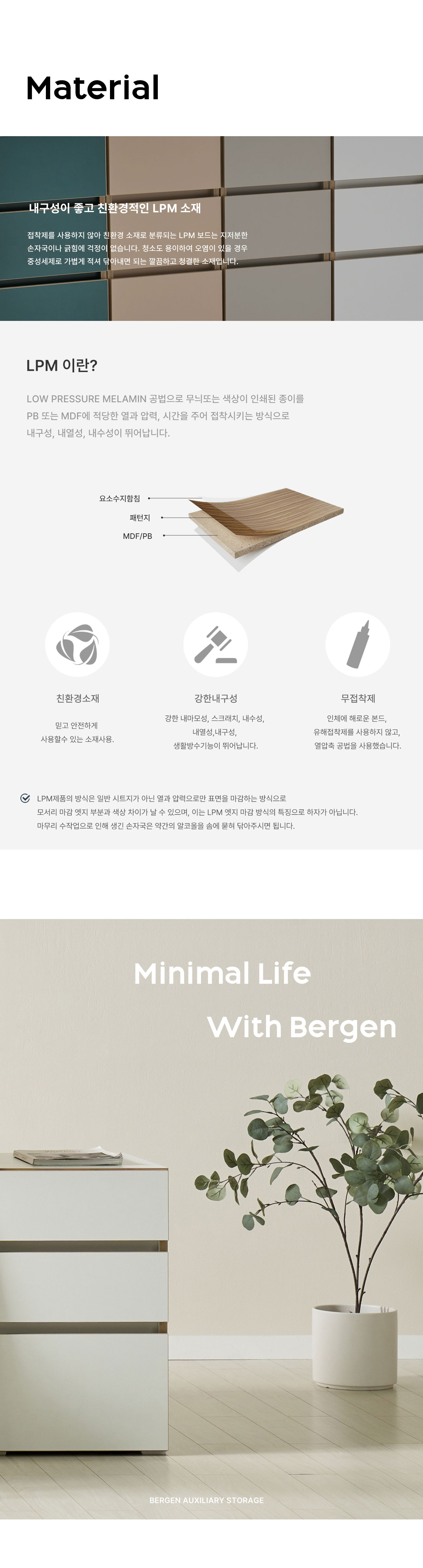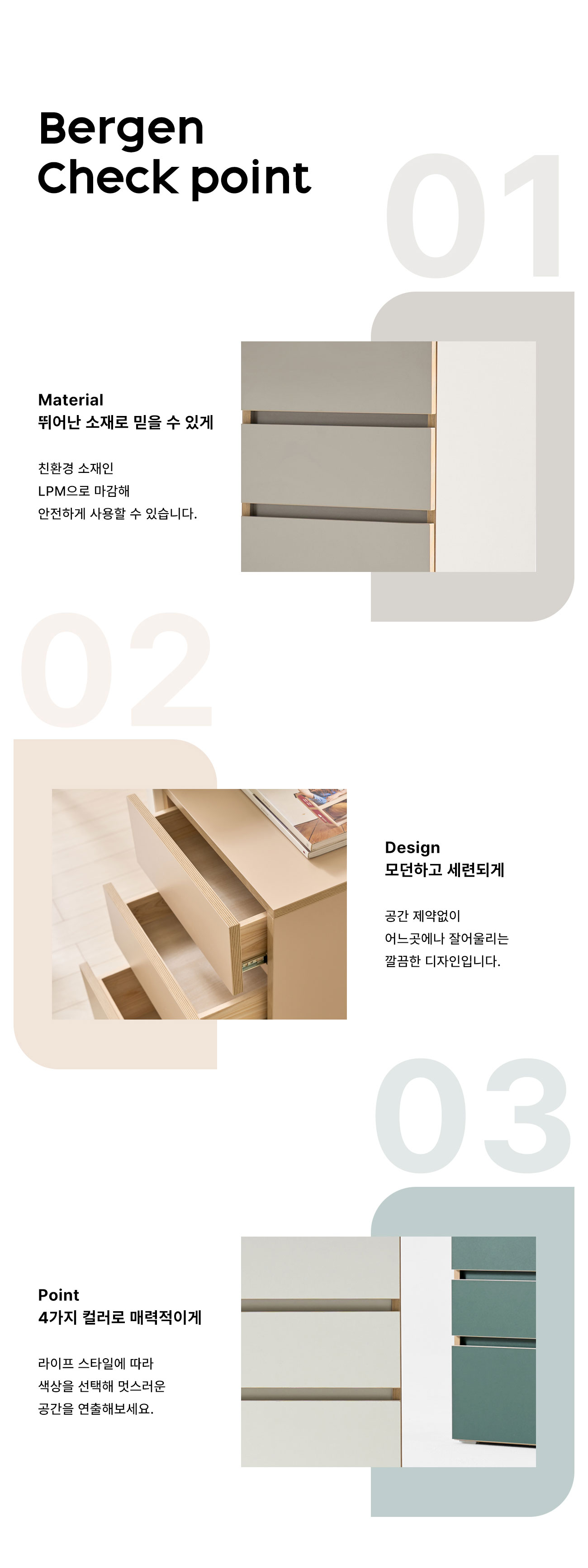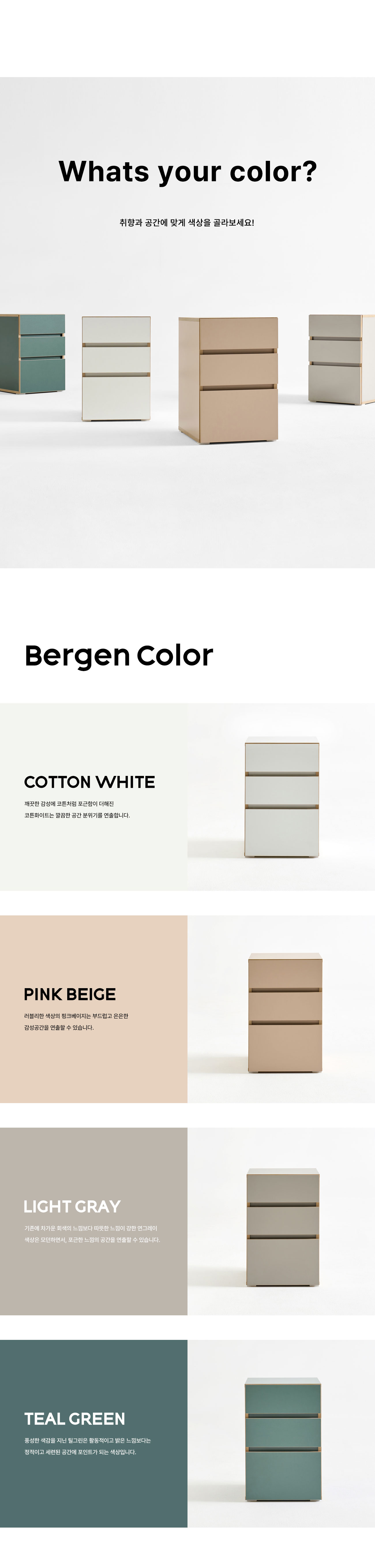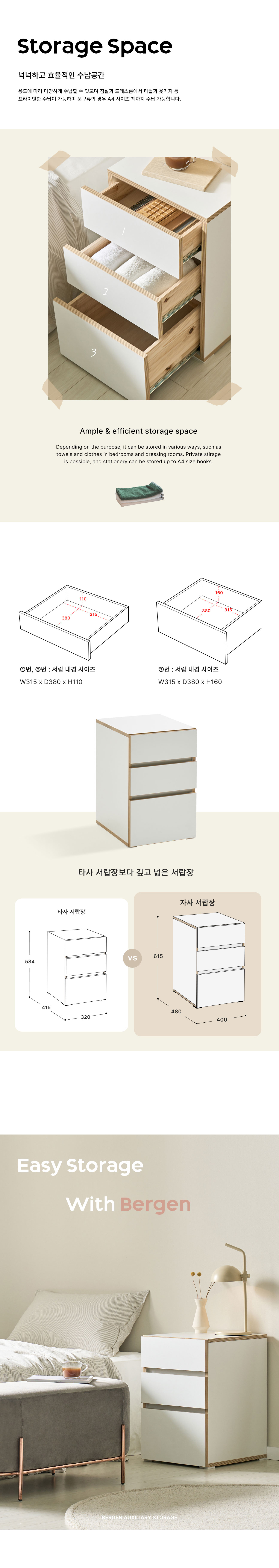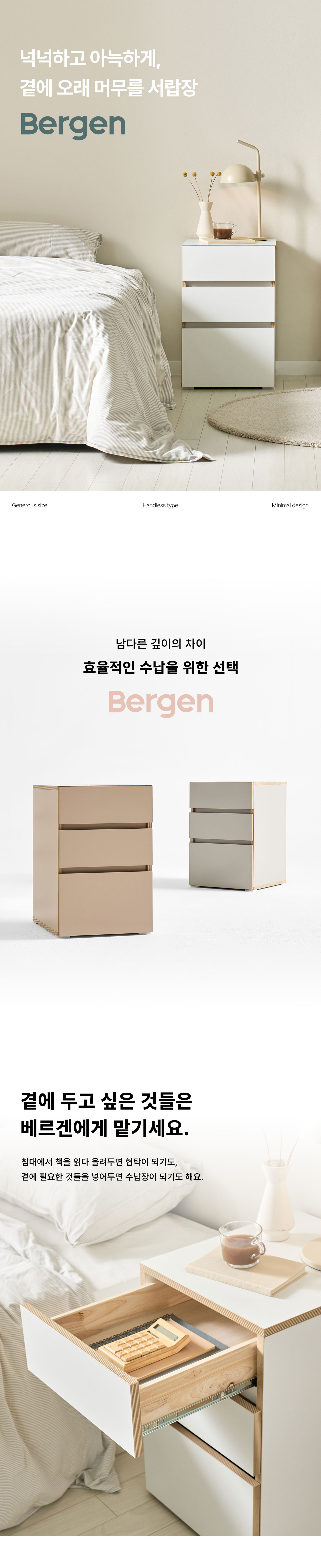 [풀오브빈스] 베르겐 3단 보조서랍장 400