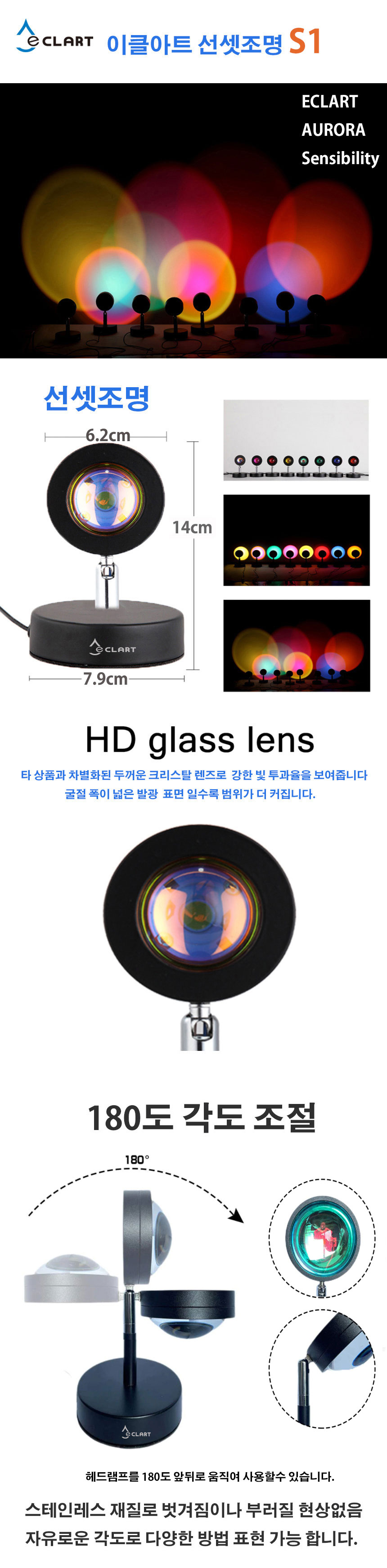 [이클아트] 선셋 조명 S1 선셋조명 일몰 무지개 일출 석양 인테리어 선물 몽환 취침등 카페인테리어 일몰 집들이 생일선물
