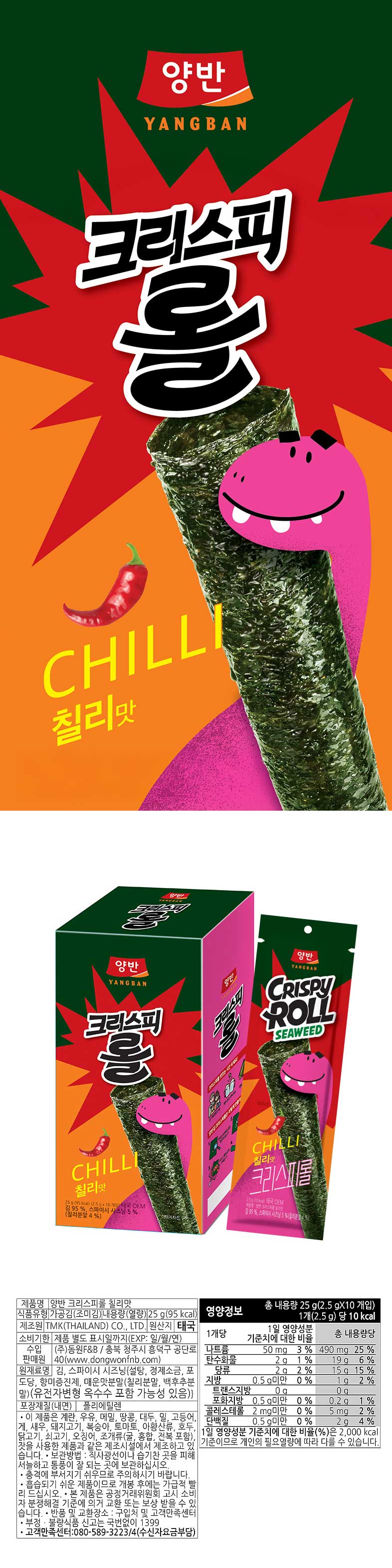 [동원] 양반 김 크리스피롤 2.5g(10입) 데리야끼 2개 + 칠리 2개