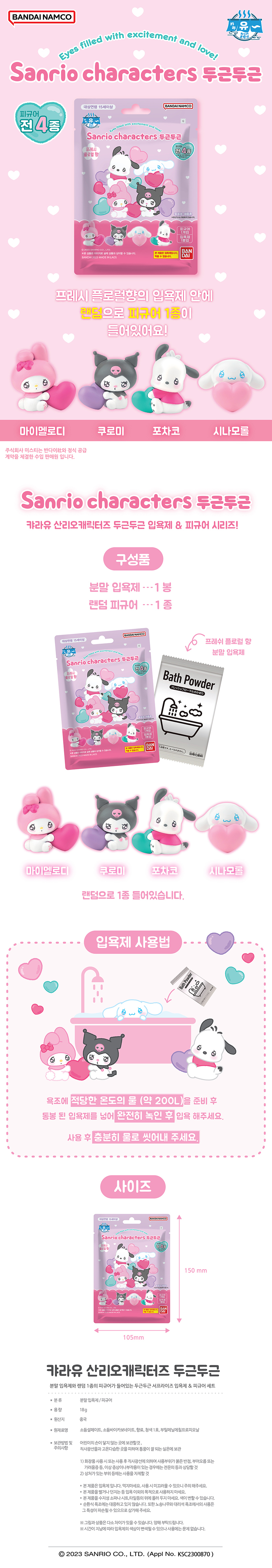 산리오 캐릭터즈 4종 두근두근 입욕제 12개입 (캐릭터 랜덤)