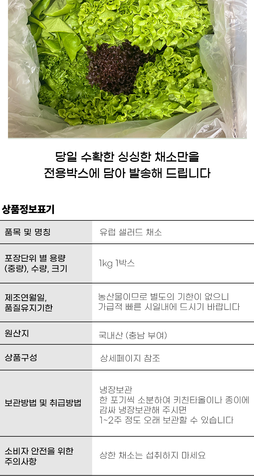 • 신선식품의 경우 재판매가 불가능한 제품 특성상 단순변심 및 개인적 입맛 차이로 인한 반품은 불가능하며 제품 수령 후 문제가 있는 경우 이상부분 사진 촬영하여 수령하신 날짜 기준 2일 이내 연락해주셔야합니다.(기일은 업체별 상이할 수 있으니 수령즉시 연락 부탁드리겠습니다.)