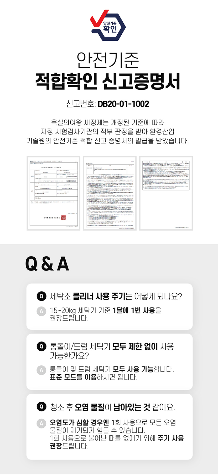 - 용도(표백제의 경우 계열을 함께 표시) 및 제형