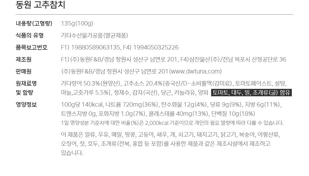 • 원재료명 (「농수산물의 원산지 표시 등에 관한 법률」에 따른 원산지 표시 포함) 및 함량(원재료 함량 표시대상 식품에 한함)