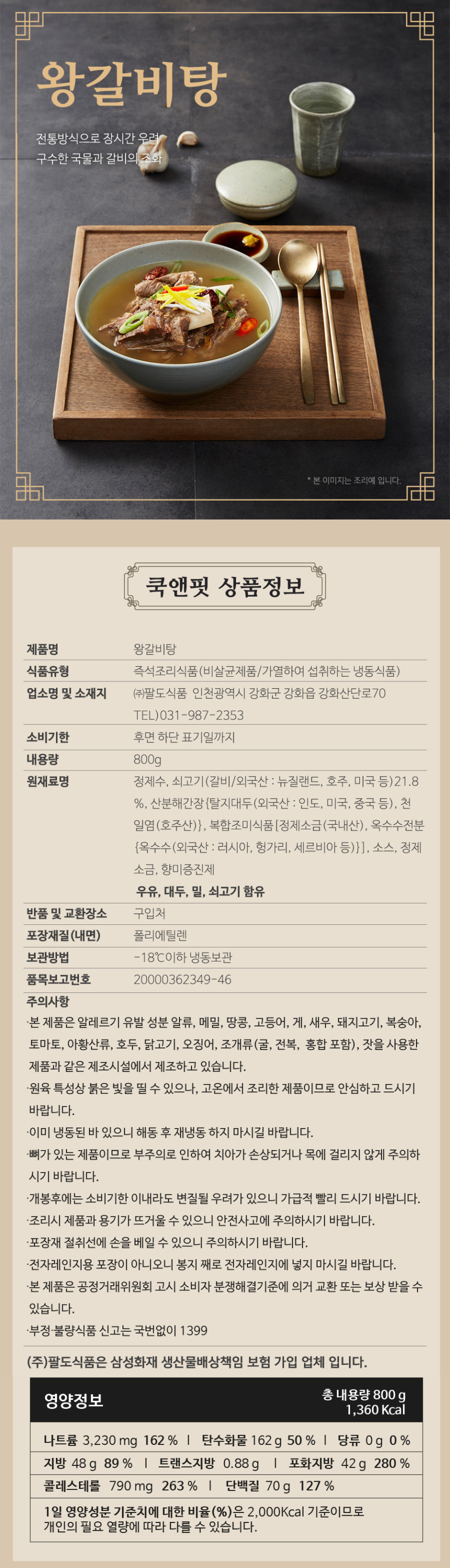 타임쿡 소 갈비탕 왕갈비탕 밀키트 캠핑 음식 요리 (800g x 1/2/4팩 택1)