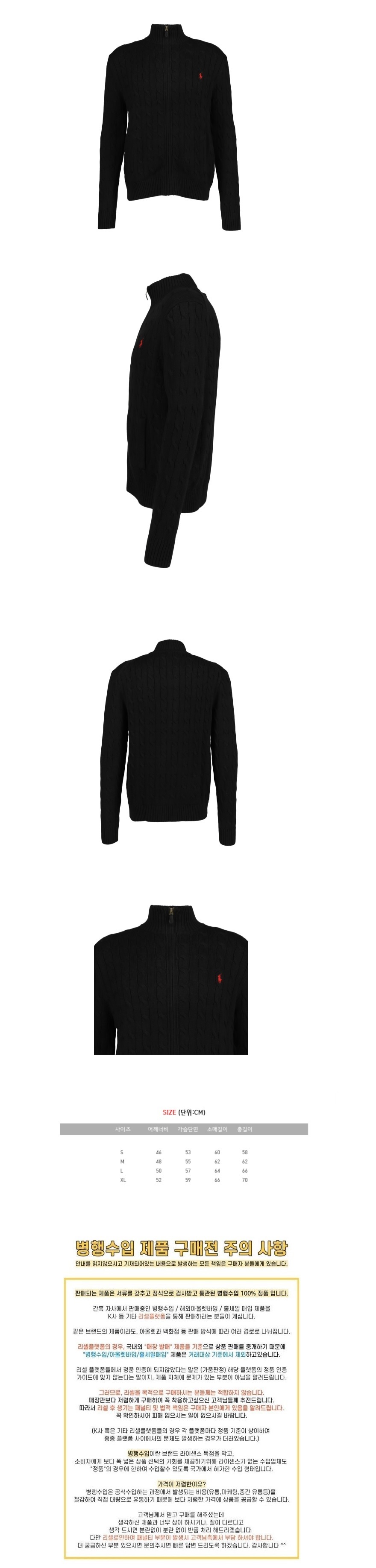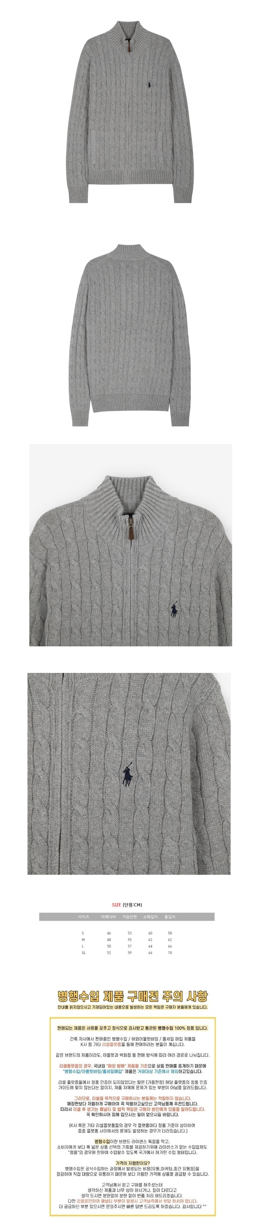 [폴로랄프로렌] 남녀공용 코튼 케이블 니트 풀집업 (S~XL, 블랙/그레이 택1)