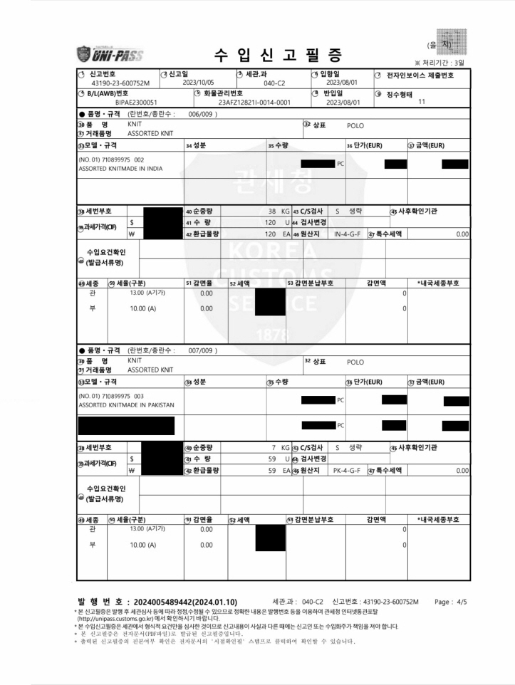 • 제품 소재 (섬유의 조성 또는 혼용률을 백분율로 표시, 기능성인 경우 성적서 또는 허가서)