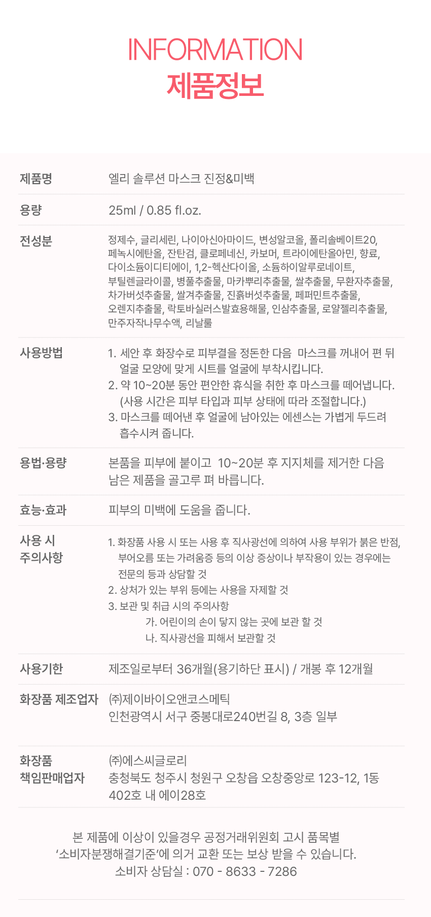 • 「화장품법」에 따라 기재ㆍ표시하여야 하는 모든 성분