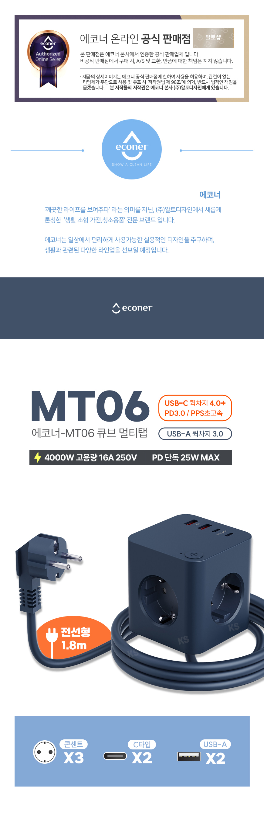 에코너-MT06 큐브멀티탭 전선형1.8m