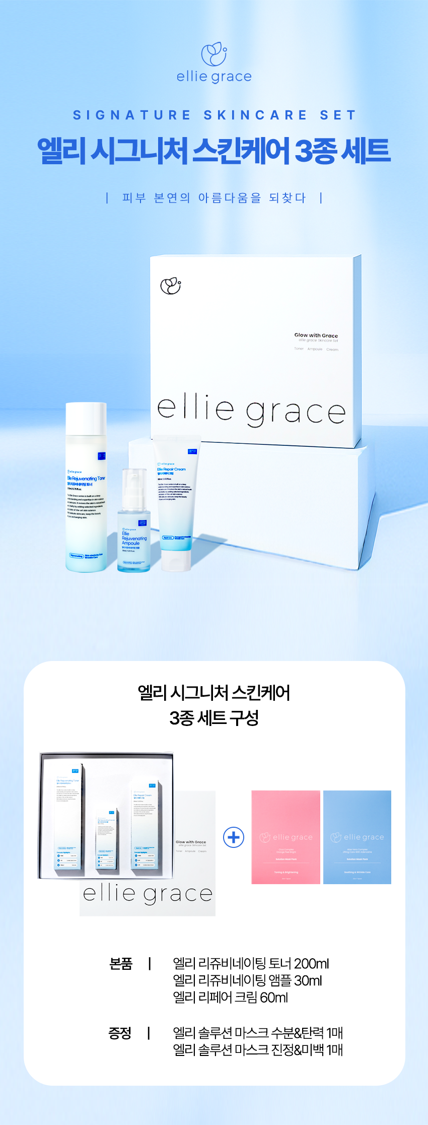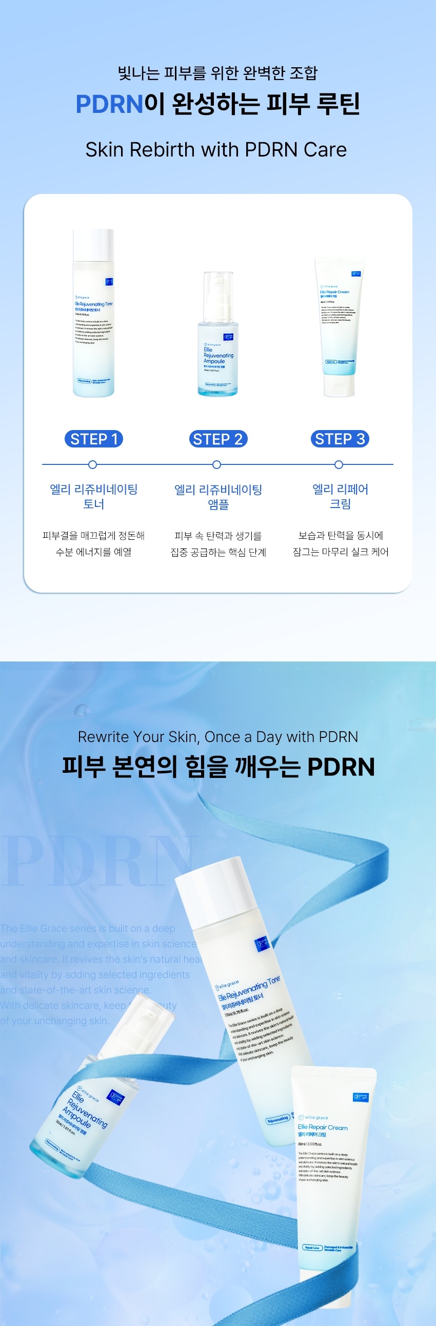 [엘리그레이스] 리쥬비네이팅 PDRN 3종세트(토너 + 앰플 + 크림)