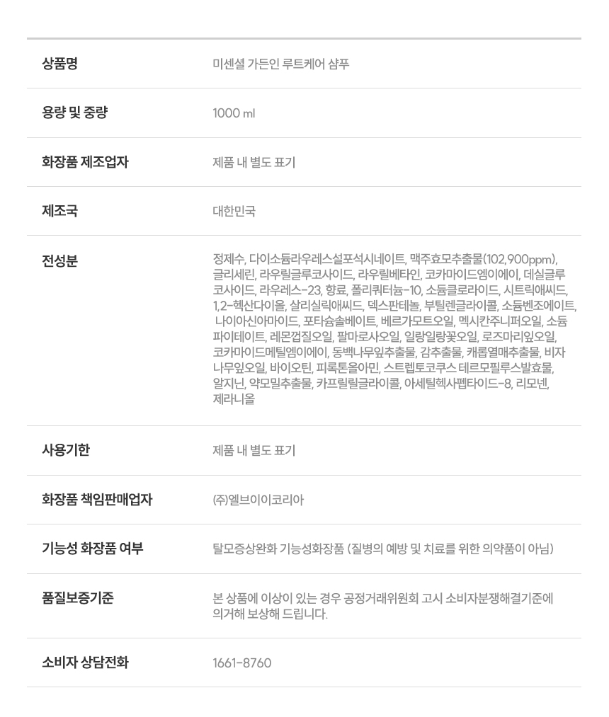 [하이서울기업] 미센셜 가든인 루트케어 탈모완화 샴푸 1000ml x 3