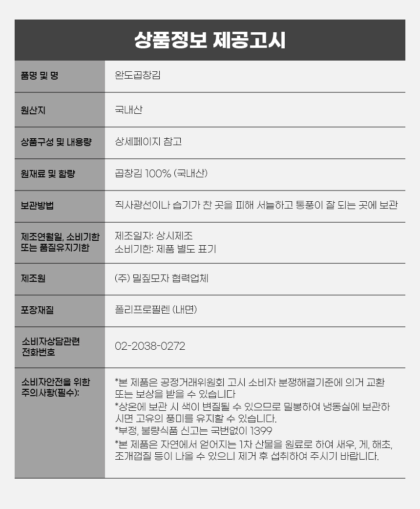 • 신선식품의 경우 재판매가 불가능한 제품 특성상 단순변심 및 개인적 입맛 차이로 인한 반품은 불가능하며 제품 수령 후 문제가 있는 경우 이상부분 사진 촬영하여 수령하신 날짜 기준 2일 이내 연락해주셔야합니다.(기일은 업체별 상이할 수 있으니 수령즉시 연락 부탁드리겠습니다.)