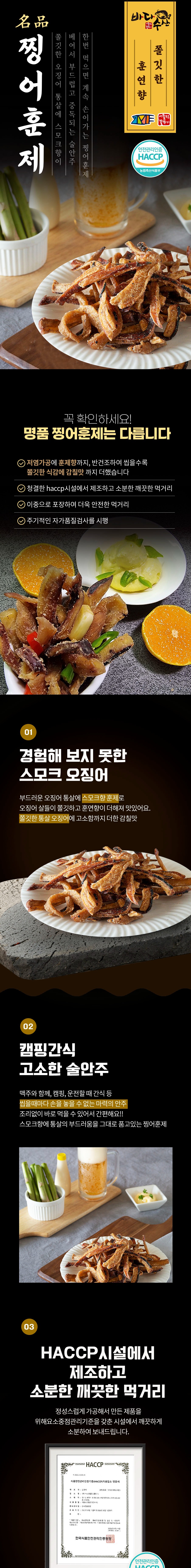 오징어 귀를 채 썰어 훈제향을 더한 제품으로, 씹을수록 깊은 훈제 풍미가 살아납니다. 남녀노소 모두에게 인기 있는 대중적인 맛입니다.