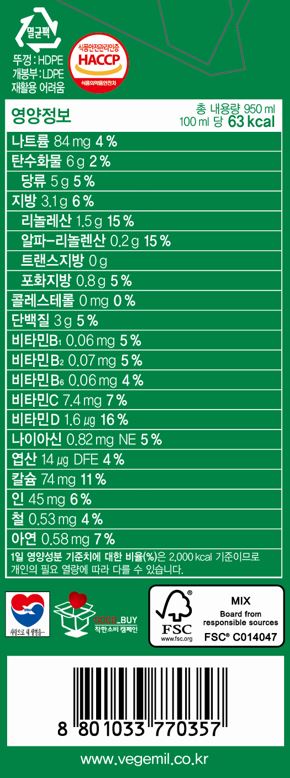[정식품] 베지밀 두유 담백한A/달콤한B 950ml 4팩/12팩