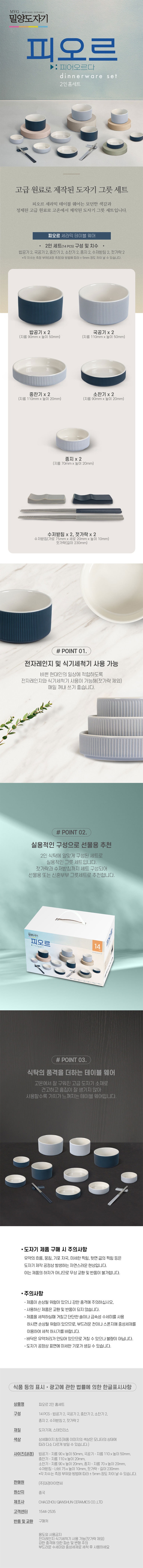 [밀양도자기] 피오르 2인 테이블웨어 홈세트 14P