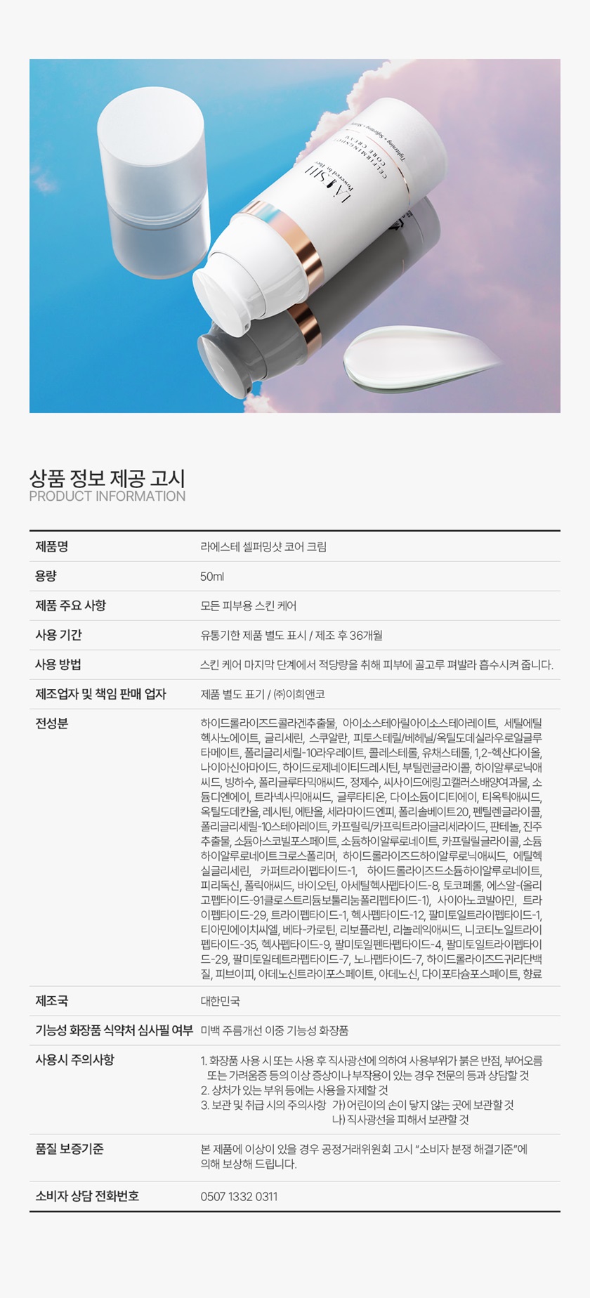 - 제품 주요 사양 (피부타입, 색상(호, 번) 등)