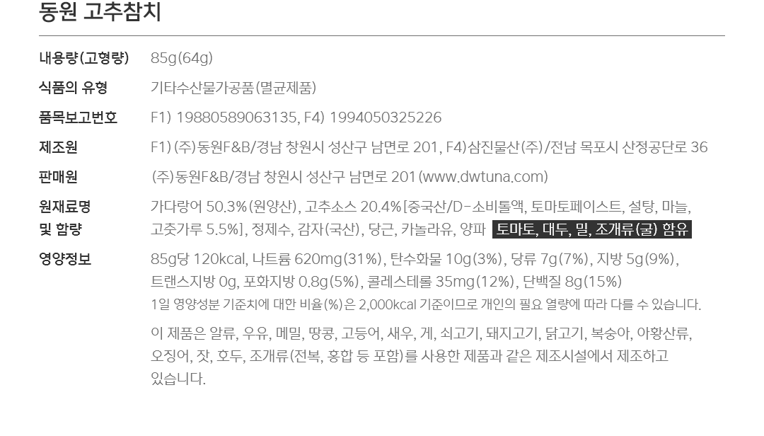 • 원재료명 (「농수산물의 원산지 표시 등에 관한 법률」에 따른 원산지 표시 포함) 및 함량(원재료 함량 표시대상 식품에 한함)