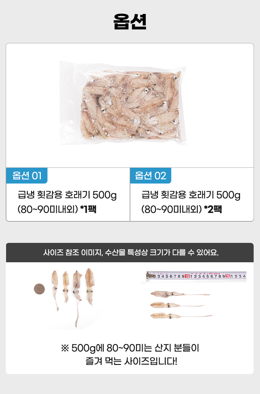[엠픽] 부드럽고 야들야들한 숨은 선물 횟감용 호래기 500g(8~90미내외)*2팩