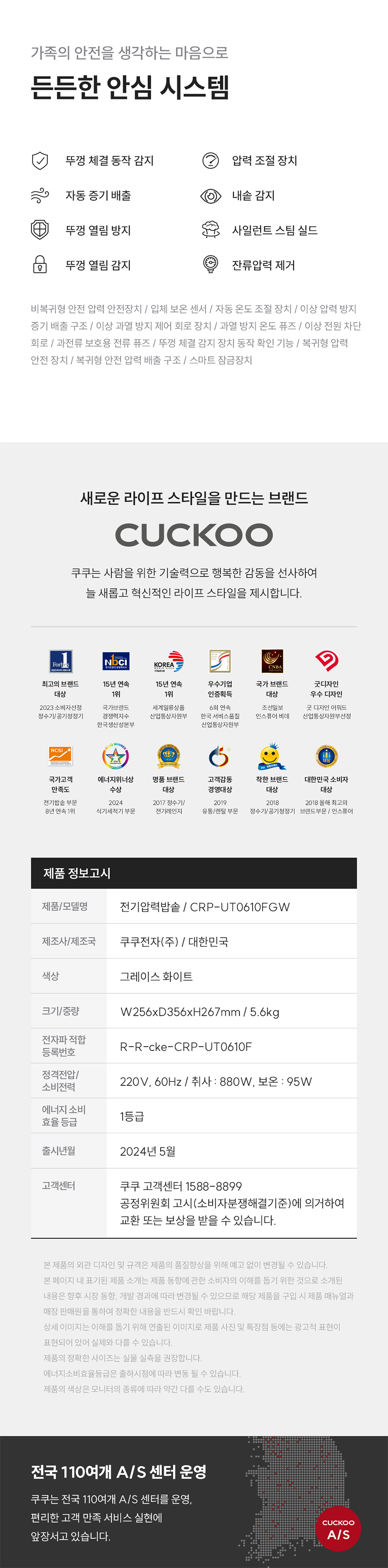 [쿠쿠] 6인용 사일런스 어반 트윈프레셔밥솥 그레이스 화이트 CRP-UT0610FGW