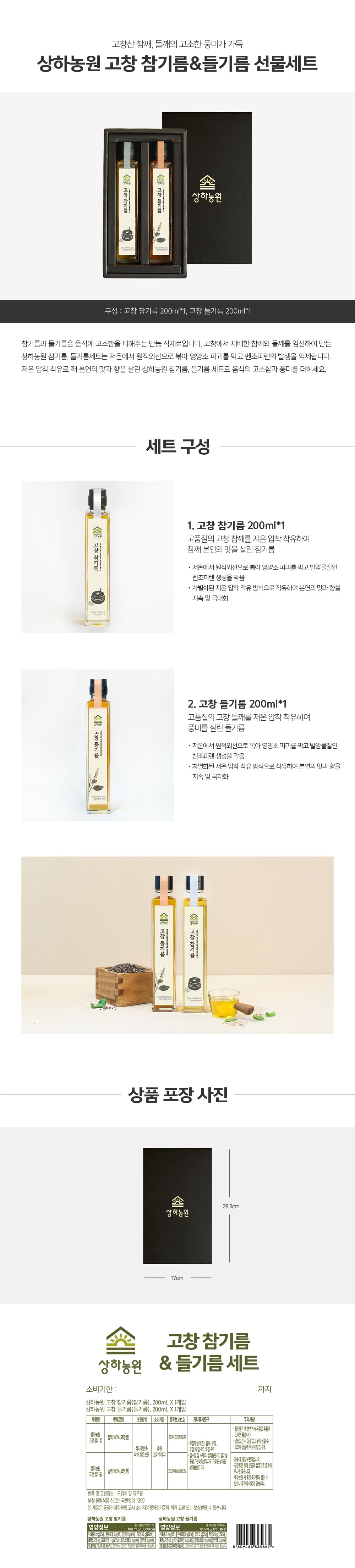 [상하농원] 참기름들기름 세트 400G*1