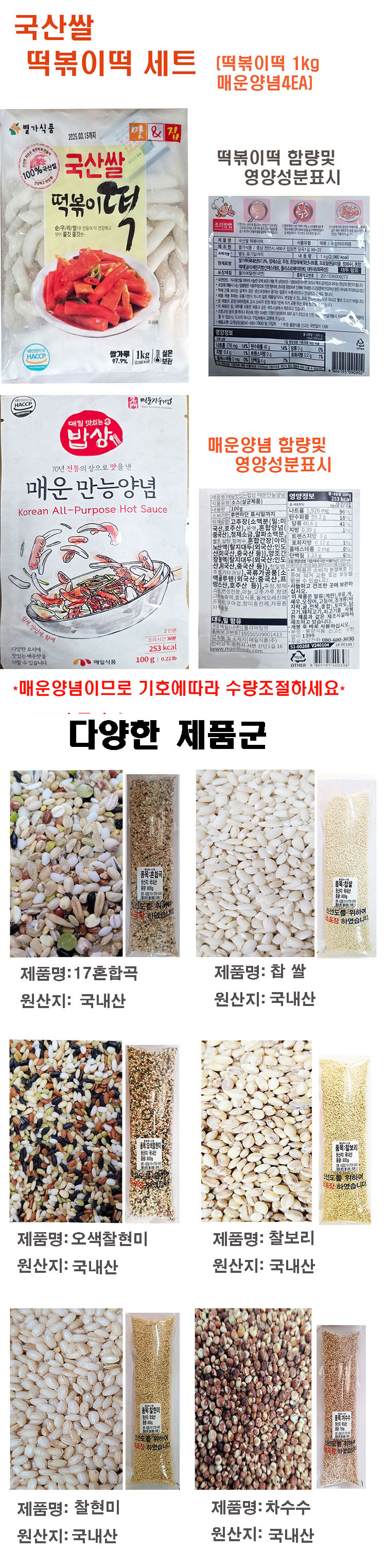 • 국산쌀 떡볶기 떡1kg+ 매운만능소스 100g*4