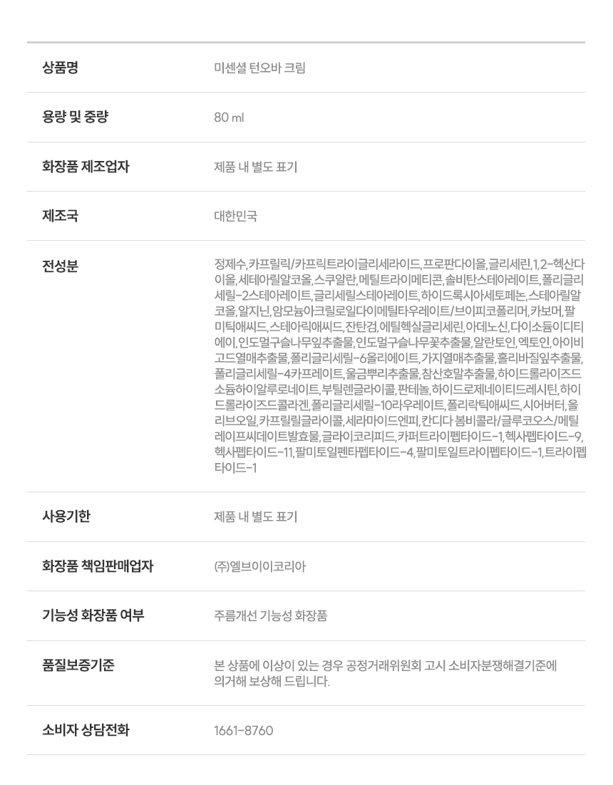 [하이서울기업] 미센셜 턴오바 탄력 수분크림 80ml