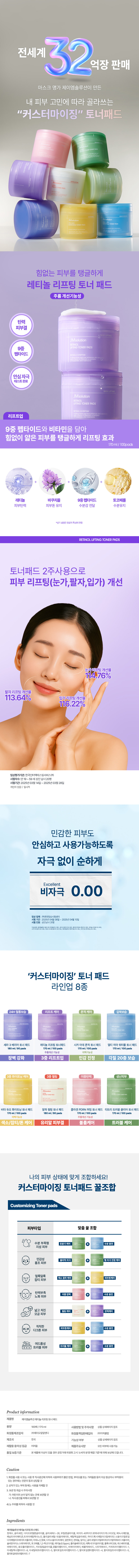 제이엠솔루션 레티놀 리프팅 토너패드 스킨패드 (170ml*100매입) (1/2개 택1)