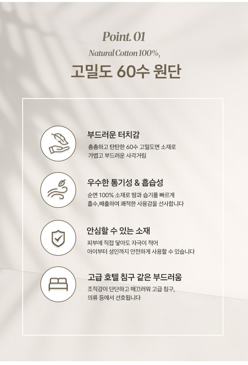 요아린 루미룸 60수 고밀도 순면 베개커버 50x70