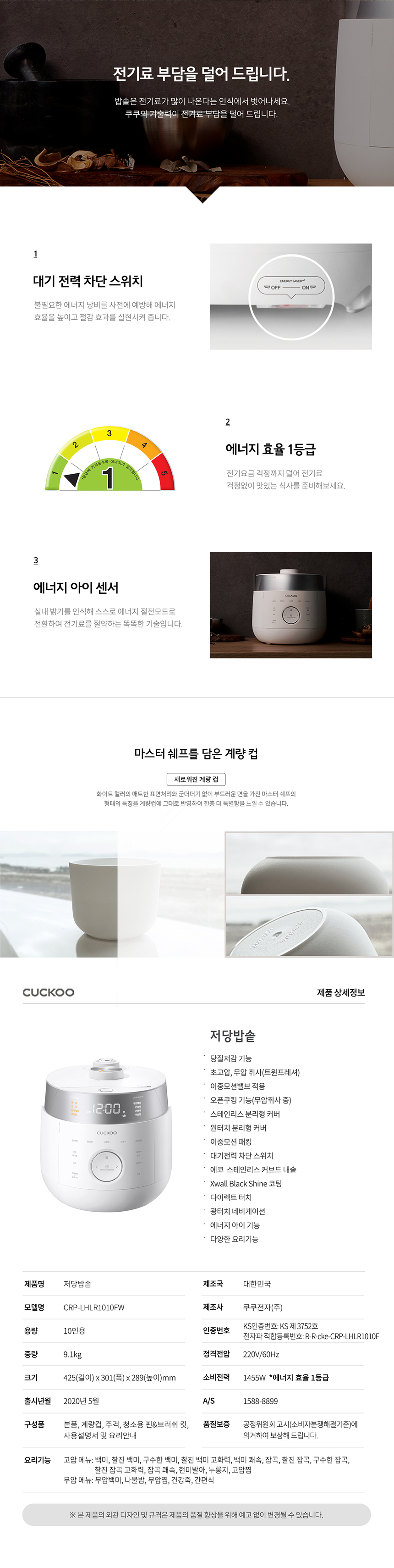 [쿠쿠] 10인용 트윈프레셔 저당밥솥 화이트 CRP-LHLR1010FW