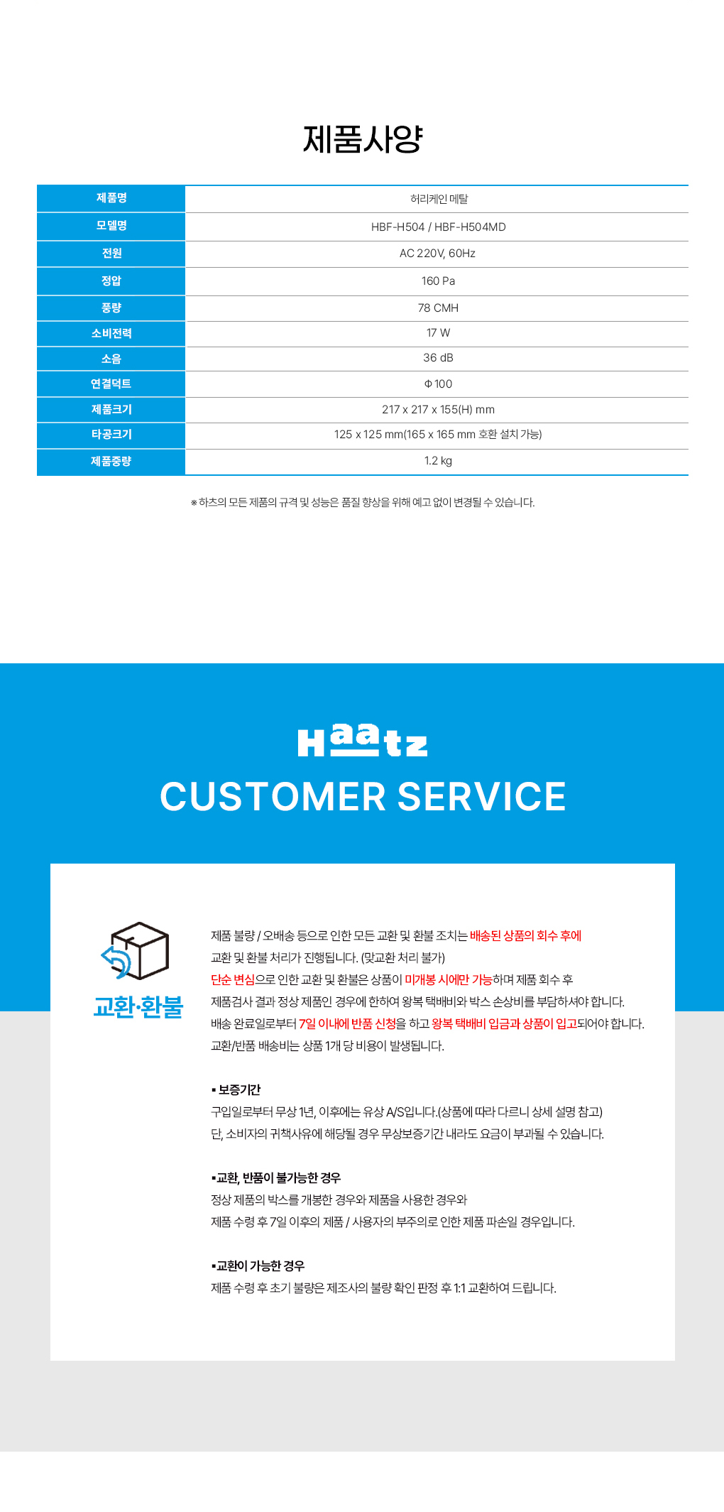 하츠 허리케인 환풍기 HBF-H504 환기 욕실 화장실 냄새 자가설치 플러그타입